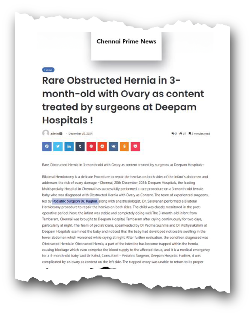 Dr. Raghul M. MBBS MS DNB FMAS FICRS MCh(Paed Surg)